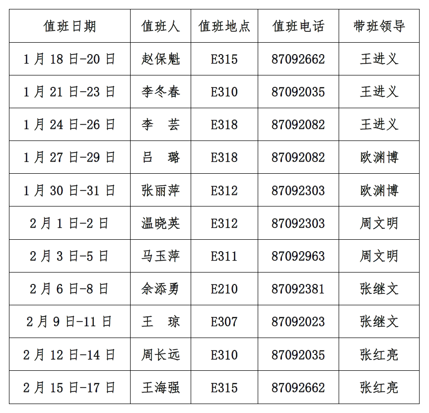 » 2022寒假值班表
