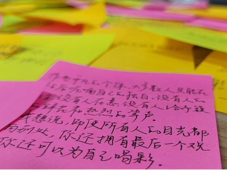 12月17日,员工会组织引导同学们以书写鼓励的话语、幸运符号的形式写下留言条,为考研学子跑好最后一公里加油助威。虽然有些仅是一句话、一个表情包,却也为考研学子们带来积极的能量,让每个参与活动的同学通过自己的文字,传递心意,与考研学子们产生更紧密的联系和情感纽带。