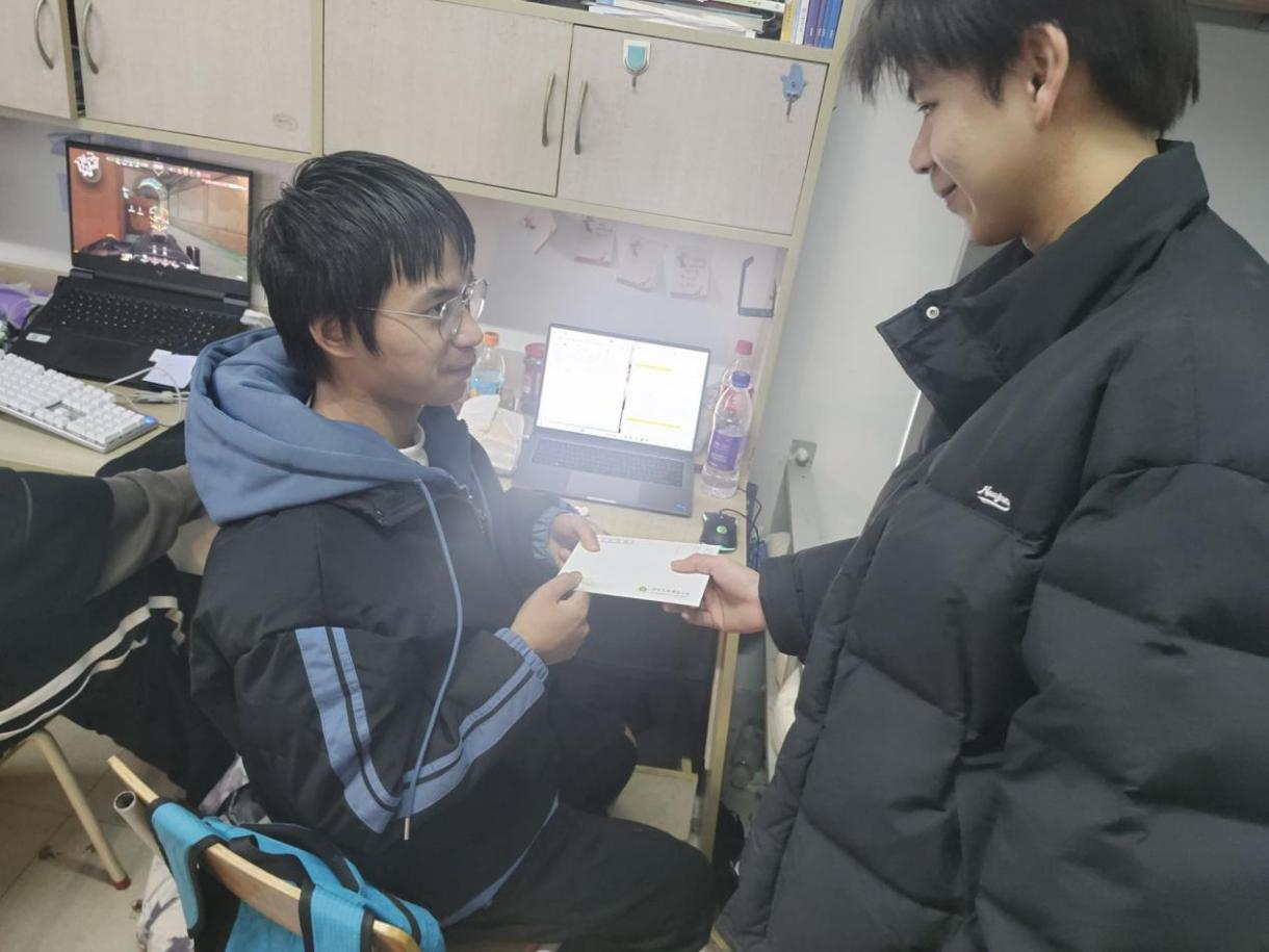 活动前期,同学们踊跃参与,用温暖的笔触写下对不懈努力的考研学子的鼓励与支持,不仅让同学们感受到文学的力量,也给考研学子送去温暖、增添动力。12月13日,一封封匿名信伴着公司领导、老师们精心准备的“考研加油礼包”发放到每一位考研学子的手中。考研学子孙楠在收到匿名信后给员工会权益邮箱留言:“最近考研的压力比较大,但读到这封信后,心里就像有一股暖流在徜徉,很温暖,感谢学弟学妹的鼓励!”