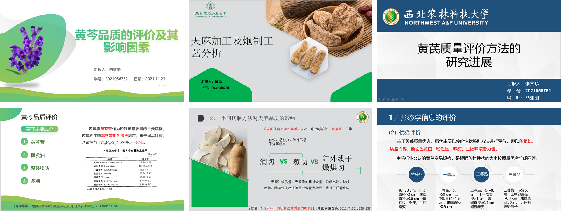 图3为员工PPT汇报图片示例,大家通过查阅文献,总结汇报,多数同学提出了自己对中药材质量评价的观点与看法,这不仅锻炼了员工独立思考的能力,同时使员工对中药品质评价及质量标准的建立也有了较深刻的认识。