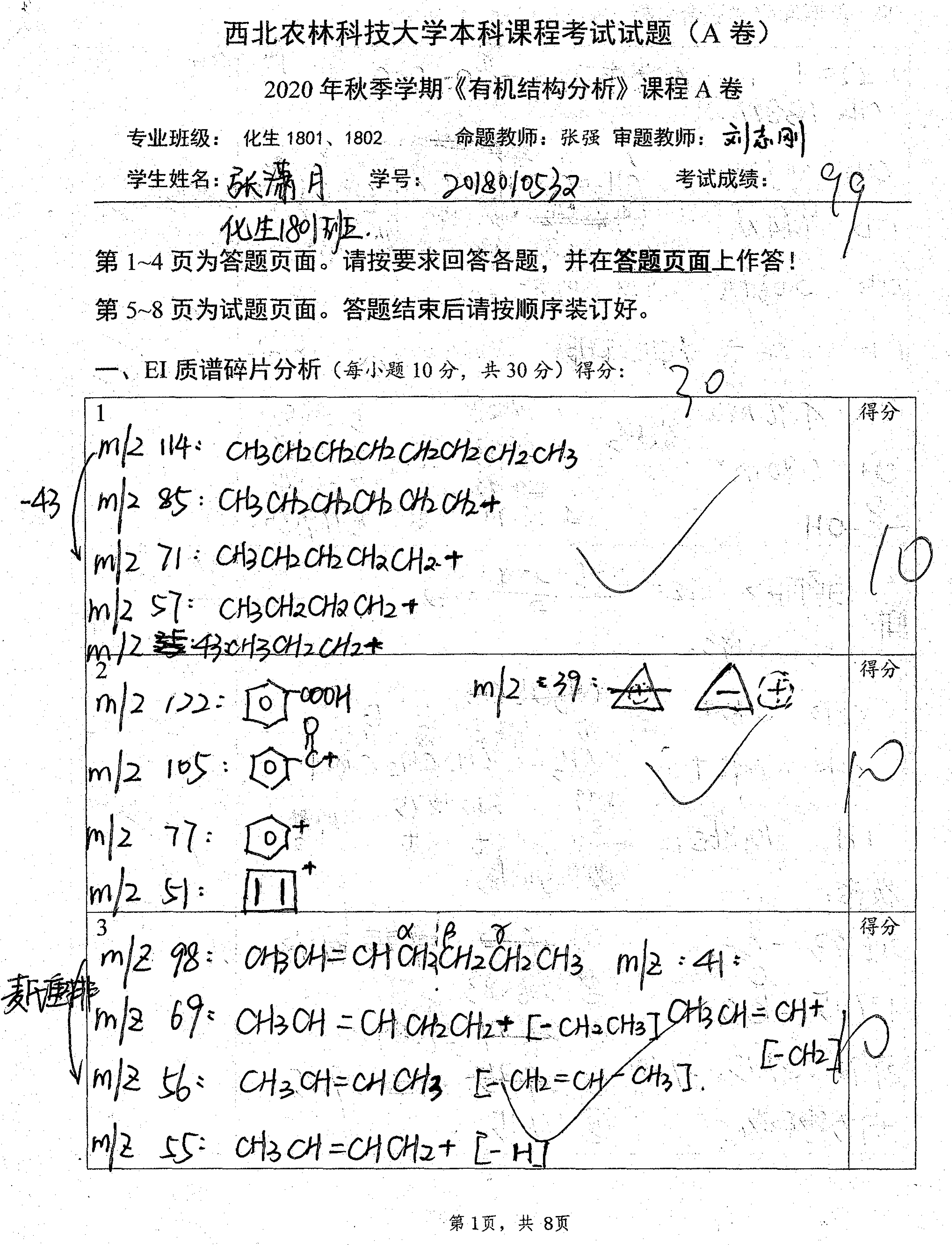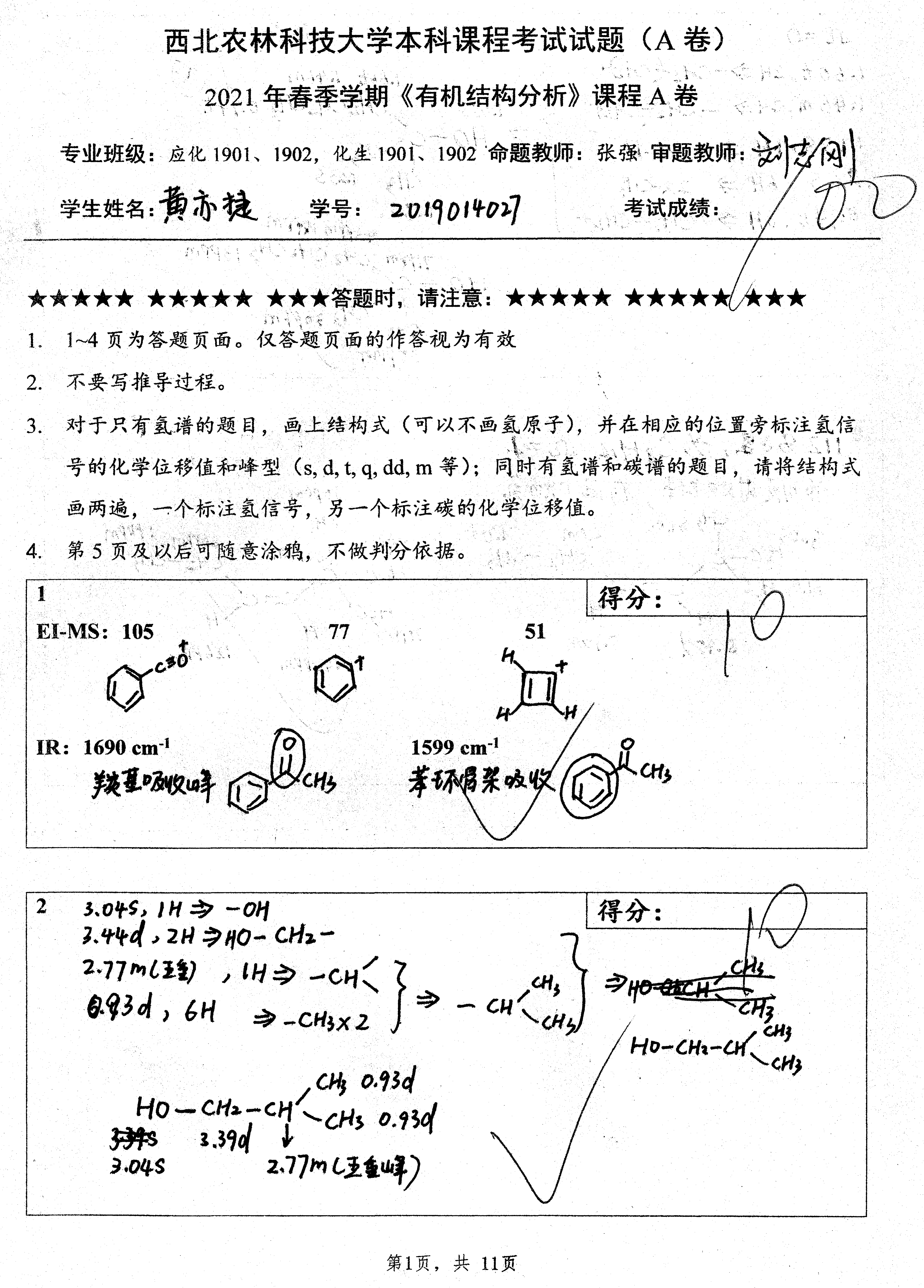 课程的核心任务是培养员工的有机图谱分析能力。考试题目也同样紧紧围绕能力考核开展。自2019年以来,考试题目类型抛弃了选择题、填空题和问答题,而全部改为以图谱分析能力考核为目的的图谱分析题,强化能力考核而非知识点考核,重在考查员工运用知识解决实际问题的能力。