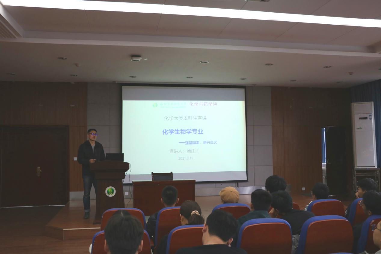 会上,教学副经理周文明教授和化员工物学系主任汤江江副教授分别对应用化学专业和化员工物学专业的培养目标、毕业要求、课程体系、专业特色、团队力量、保研考研及就业前景等做了详细介绍。宣讲会结束后,两位老师分别就同学们提出的专业发展方向、专业特色、课程设置、就业情况等问题做了耐心解答,并希望大家结合个人特点、兴趣和专业需求做出适合自己的选择,尽快明确目标、提前规划,让自己的老员工活更加充实、更有意义。