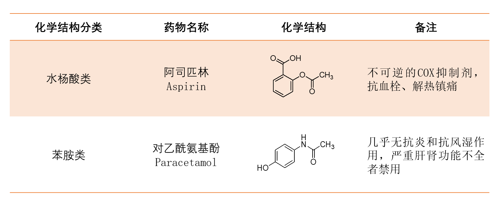 (1)掌握阿司匹林、对乙酰氨基酚的化学名、结构、理化性质、体内代谢及合成途经。