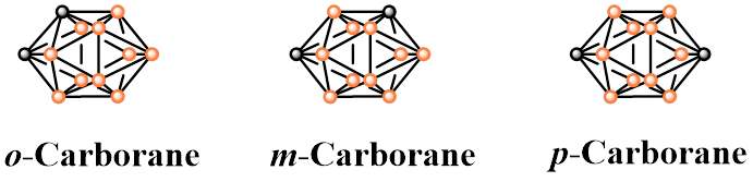 正二十面体闭式碳硼烷(carborane)长期以来被认为是芳香族的一员,有三种稳定的异构体(邻、间、对碳硼烷)。碳硼烷团簇的骨架由三中心两电子(3c-2e)键构成,这种特殊的价键结构使碳硼烷可能具有非常规的光物理与电化学性质。由于碳硼烷的给/受电子能力不明显且它的共轭性不好,它作为光功能材料的构建单元直到2010年以后才引起人们的注意。邻碳硼烷在得电子之后C-C键很容易拉长,意味着C-取代邻碳硼烷在激发态是一个很好的电子受体,因此大部分已报道的光功能碳硼烷衍生物都是基于C-取代的邻碳硼烷。然而,有关间、对碳硼烷衍生物以及邻碳硼烷硼位取代衍生物的光物理性质研究报道甚少,且结论是这些取代模式下的衍生物的光物理性质与取代基本身的基本相同、引入碳硼烷的意义不大。我们在研究碳硼烷分子轨道特点的基础上,设计合成了一系列非传统C-取代的碳硼烷衍生物,并研究这些取代模式对碳硼烷光物理性质的影响,初步总结了碳硼烷不同顶点之间取代基的相互作用。